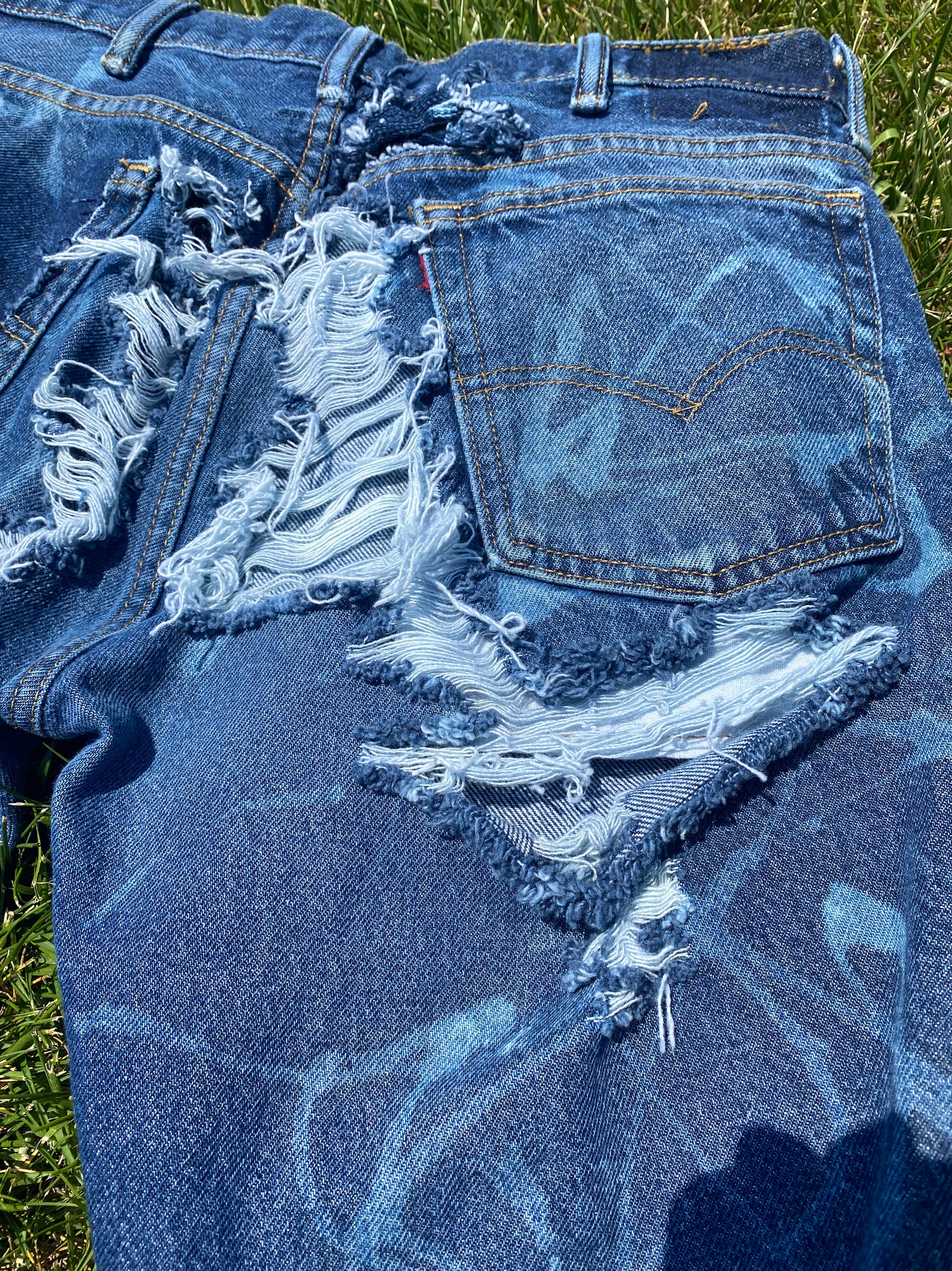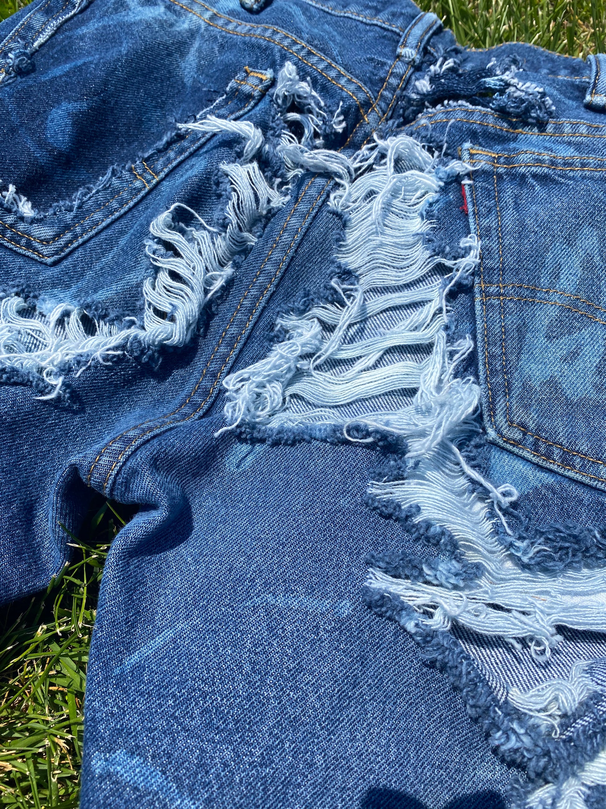 PLEASE NOTE: EACH PAIR OF JEANS ARE ONE OF A KIND. ALL DISTRESSING, PAINTING AND EMBELLISHMENTS ARE DONE BY HAND. Denim colors may vary slightly.