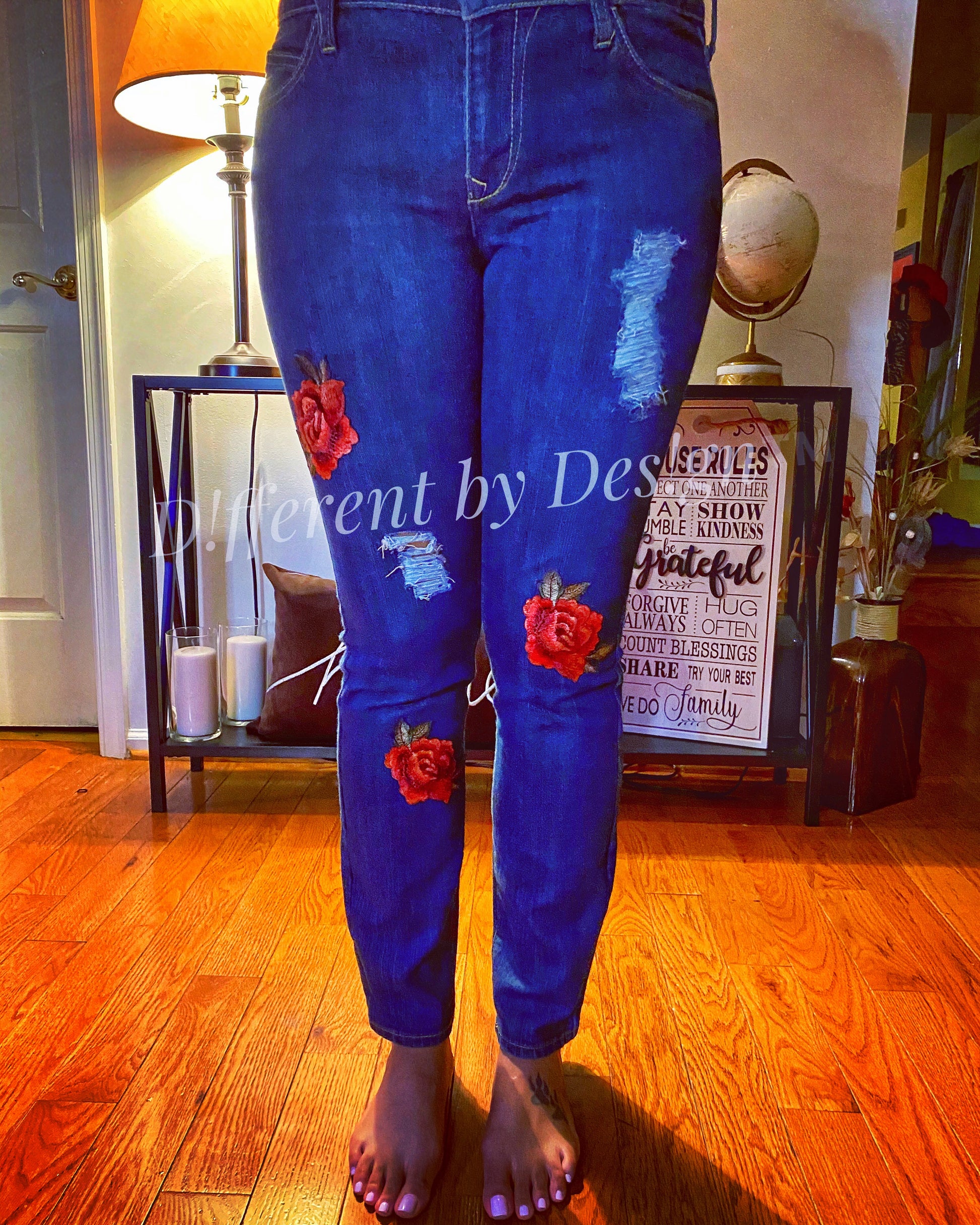PLEASE NOTE: EACH PAIR OF JEANS ARE ONE OF A KIND. ALL DISTRESSING, PAINTING AND EMBELLISHMENTS ARE DONE BY HAND.