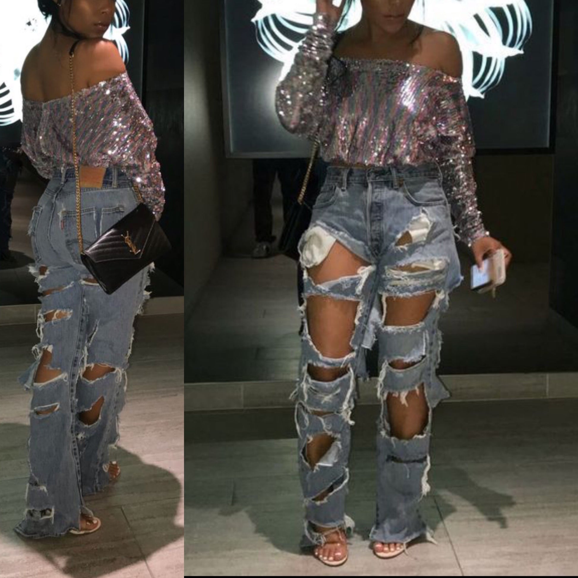 PLEASE NOTE: EACH PAIR OF DENIM ARE ONE OF A KIND. ALL DISTRESSING, PAINTING AND EMBELLISHMENTS ARE DONE BY HAND. DENIM MAY VARY SLIGHTLY: VINTAGE/RECYCLED.